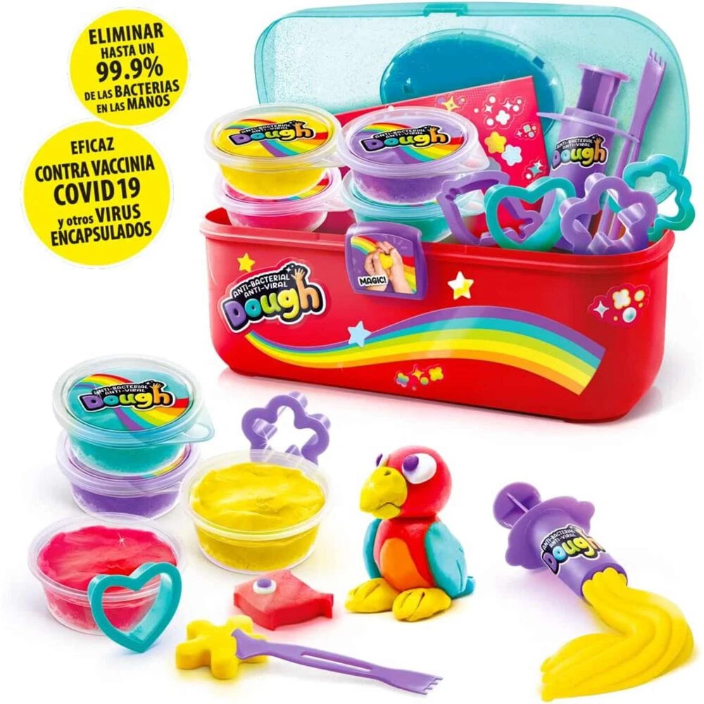 Una innovadora pasta de modelar antibacteriana que mata hasta el 99,9% de los gérmenes de tus manos. ¡Juega con tu arcilla de modelar antibacteriana, desinfecta tus manos y más! Sin alcohol y reutilizable una y otra vez hasta 1 mes. 8 colores diferentes ¡Mezcla y crea nuevos colores! ¡Lleva el maletín a todas partes! Recomendaciones de uso: Reutilizarlo una y otra vez… Efectivo hasta 1 mes. Mantenga la pasta de modelar en su recipiente cerrado entre cada uso. La arcilla de modelar antibacteriana ayuda a reducir las bacterias que potencialmente pueden causar enfermedades. Edad recomendada: + 24 meses. ADVERTENCIA: No recomendable para menores de 3 años, ya que contiene piezas pequeñas que podrían provocar asfixia en caso de ser ingeridas por el niño/a.