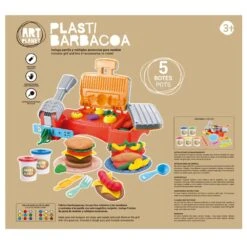 Modela los ingrecientes y ¡Cócinalos a la parrilla! Fabrica hamburguesas, los perritos calientes y las ensaladas y cocínalas a la parrilla con este magnífico conjunto. Incluye 5 botes de pasta de modelar y múltiples accesorios. Incluye parrilla y múltiples accesorios para modelar. ADVERTENCIA: No recomendable para menores de 3 años, ya que contiene piezas pequeñas que podrían provocar asfixia en caso de ser ingeridas por el niño/a.