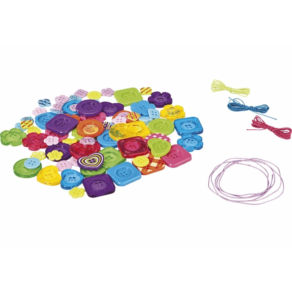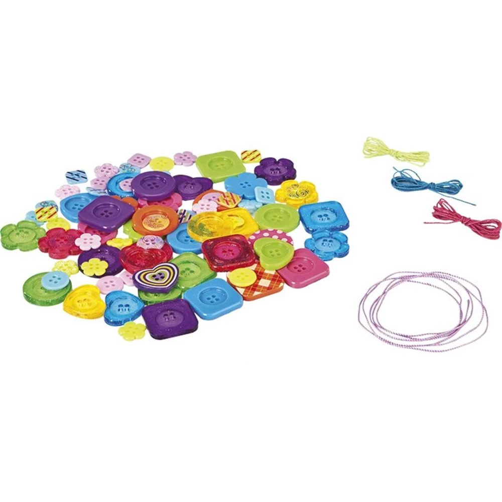 ¡Tus complementos más soprendentes! Combina botones y colores y crea las joyas más divertidas. No recomendable para menores de 3A, ya que contiene piezas pequeñas que podrían provocar asfixia en caso de ser ingeridas por el niño/a.
