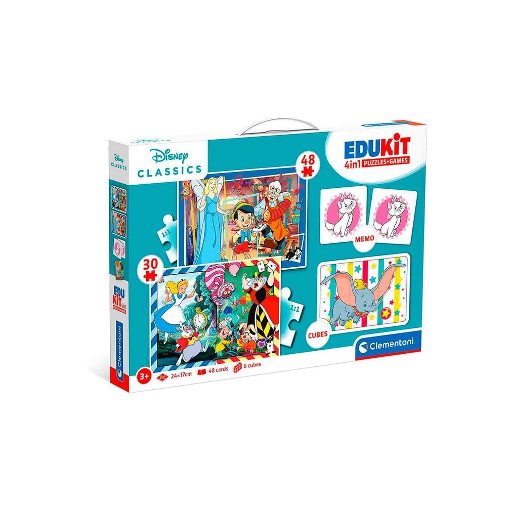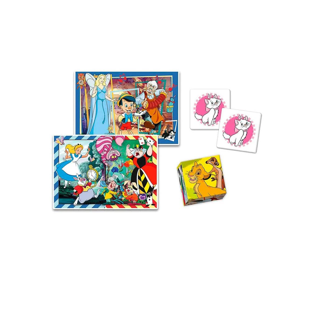 ¡Un kit completo para entretenerse y aprender en compañía de los personajes de Disney! Contienes un puzle de 30 piezas y otro de 48, un juego de memo y seis cubos. ¡Un Compendio educativo y divertido, con todo los personajes de Disney!
