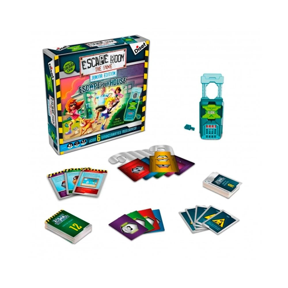 Tipo Juegos de mesa:Juegos de sociedad Edad recomendada:Más de 8 años Licencia:DISET JUEGOS Incluye:6 misiones.Cerradura de la puerta, llave de la puerta, temporizador.78 cartas de enigma, 55 cartas de respuesta, 6 colgantes para puerta, 3 tarjetas de misión.Tarjeta de distribución de zonas y puntuación. Número de Jugadores:3 6 misiones.Cerradura de la puerta, llave de la puerta, temporizador.78 cartas de enigma, 55 cartas de respuesta, 6 colgantes para puerta, 3 tarjetas de misión.Tarjeta de distribución de zonas y puntuación.