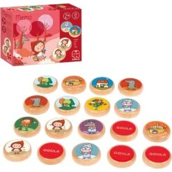 La caperucita, el lobo, el cazador , la abuelita !!!! Encontrarás los personajes de la caperucita roja en este divertido memo. Es un juego de memoria para los más pequeños. Ayuda a desarrollar la memoria y la coordinación ojo/mano Las piezas de madera son de gran calidad y muy agradables al tacto. Diseños y colores muy vivos. Las ilustraciones del juego son de Marta Cabrol. Caja es ideal para regalar. Edad recomendada: + 24 meses.