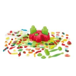 Incluye: 8 moldes con múltiples formas, pasta frutta para las chuches, mantel de trabajo, 2 cocteleras para mezclar, cuchara medidora, herramienta para cortar y base para moldes. También dispone de diferentes recetas con instrucciones muy claras para la creación de las gominolas. Juguete ideal para introducir la cocina a niños y niñas pequeños.