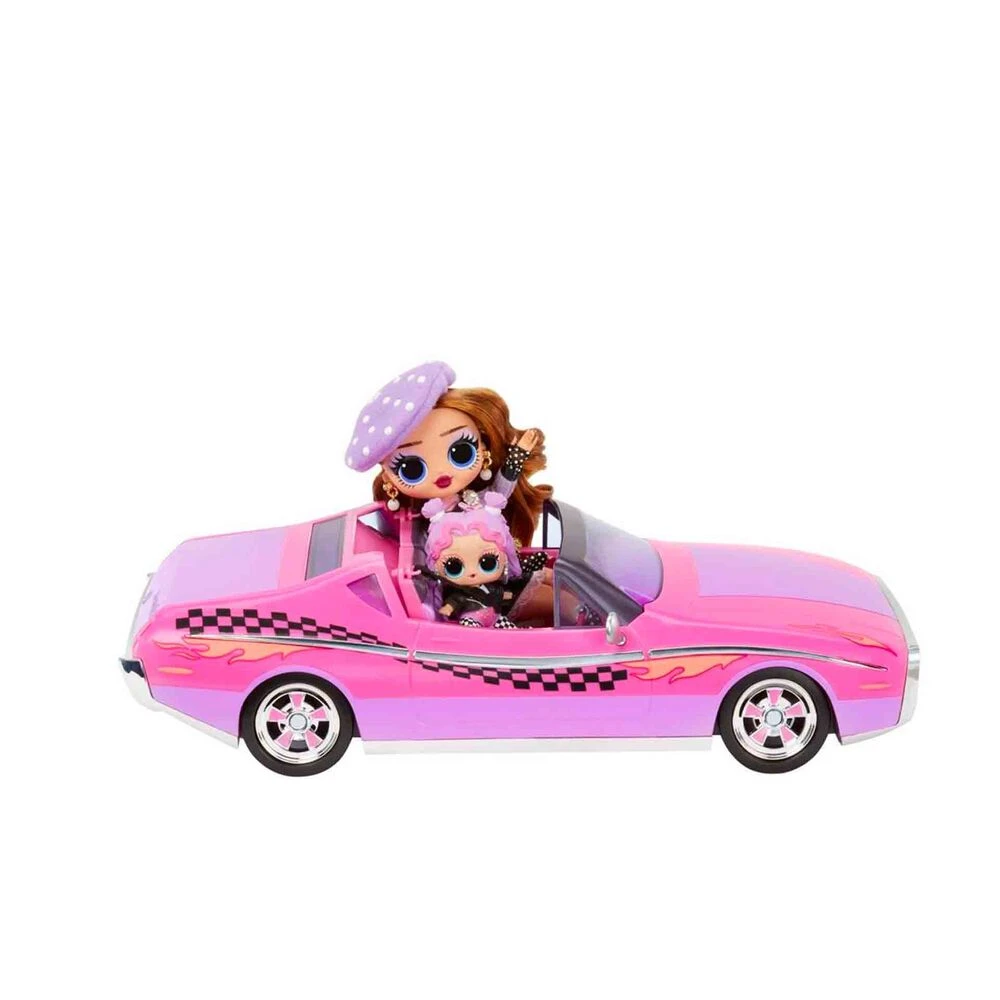 Reúnete con tus mejores amigos y viaje con estilo con el nuevo LOL Surprise City Cruiser , que presenta una exclusiva muñeca LOL Surprise, Beeps, ¡que viene con su propia moda y accesorios adorables! Este descapotable de dos plazas rosa y morado tiene un moderno look retro con cuadros en blanco y negro y elegantes llamas. ¡Así destacarás en la carretera! El juego tiene características fantásticas con un estilo realista para estimular la imaginación, como un volante giratorio, ruedas giratorias, dos espejos laterales, un tablero detallado, llaves del automóvil que puede insertar en el encendido, un llavero con forma de corazón y cinturones de seguridad para proteger tus muñecas cuando salen a la carretera!
