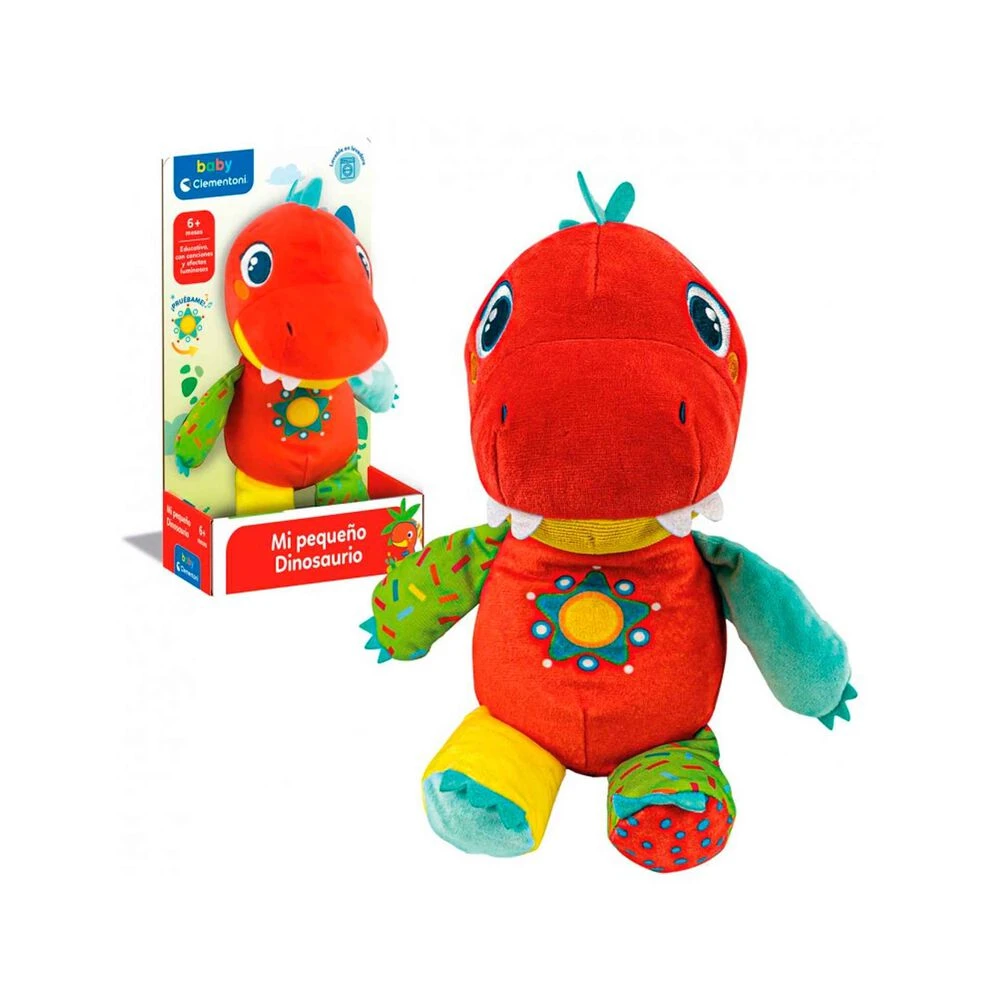 Un lindo y simpático dinosaurio, para divertirse y aprender! Al presionar el botón central, se reproducirán melodías y canciones para estimular al niño e introducirle en el mundo de las letras, sus primeras palabras, primeros números y colores. Los diferentes tejidos y elementos susurrantes estimulan el desarrollo multisensorial del bebé.