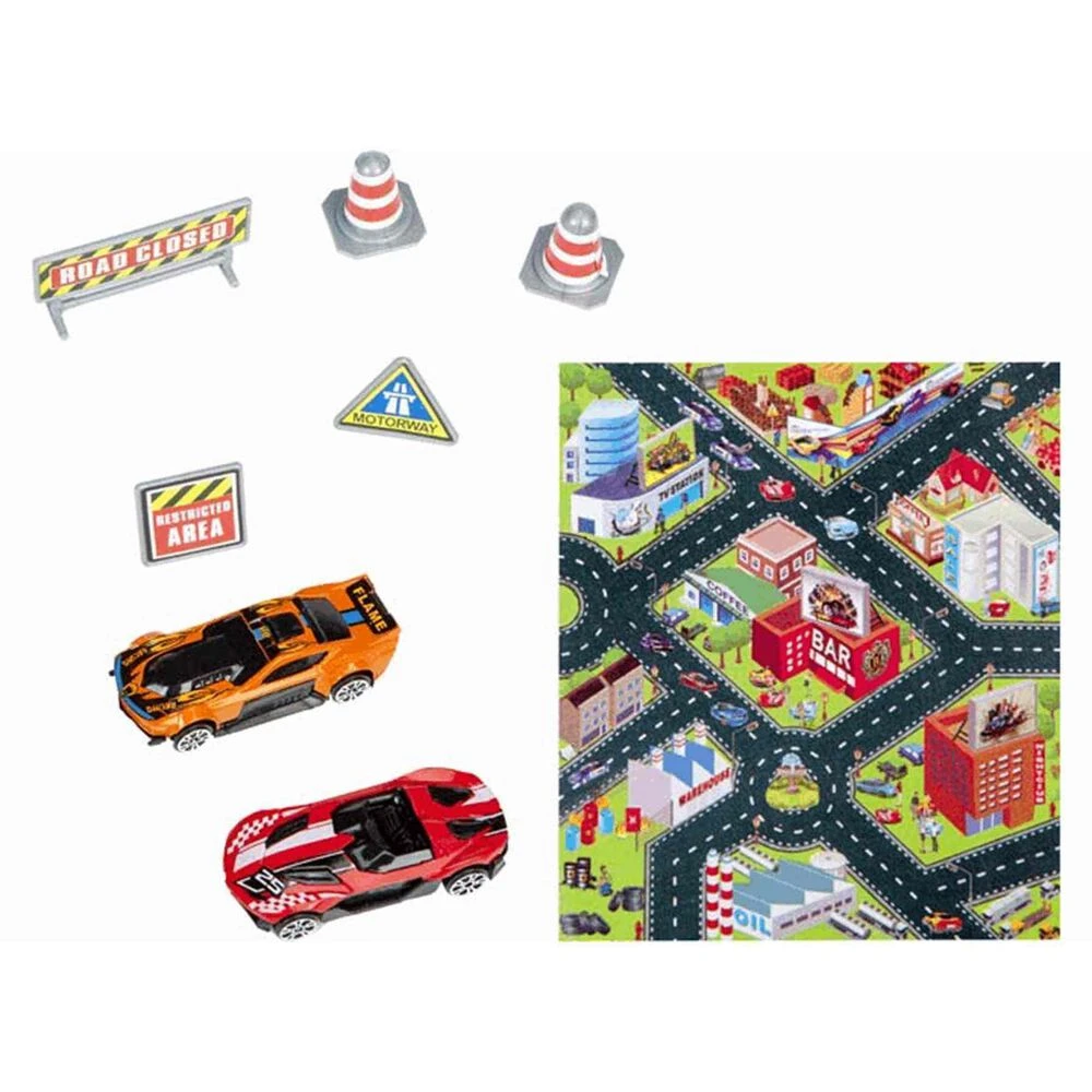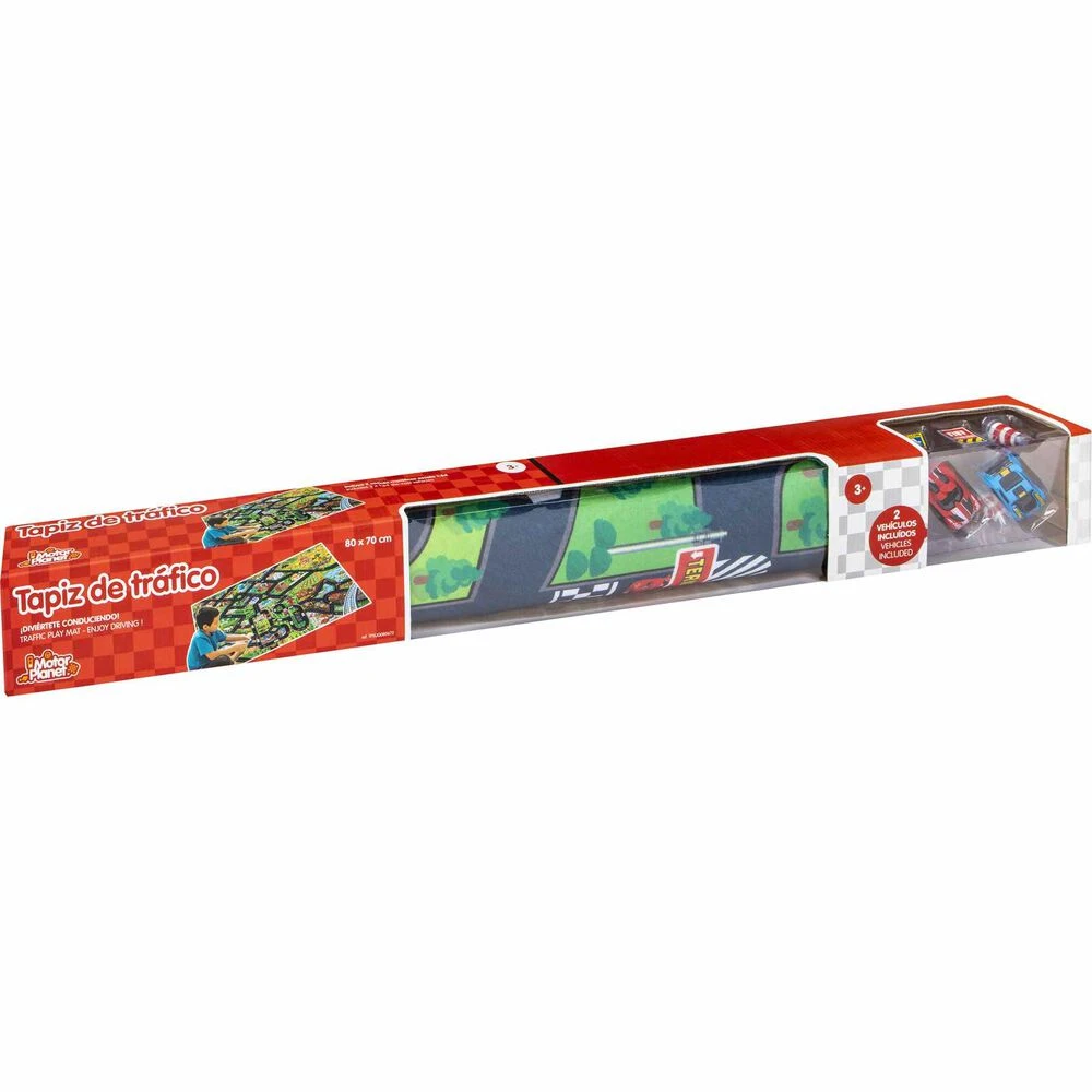 Colorito tapiz circuito para circular como los mayores. Incluye 2 coches metálicos escala 1:64 ¡Diviertete conduciendo? ADVERTENCIA: No recomendable para menores de 3 años, ya que contiene piezas pequeñas que podrían provocar asfixia en caso de ser ingeridas por el niño/a.