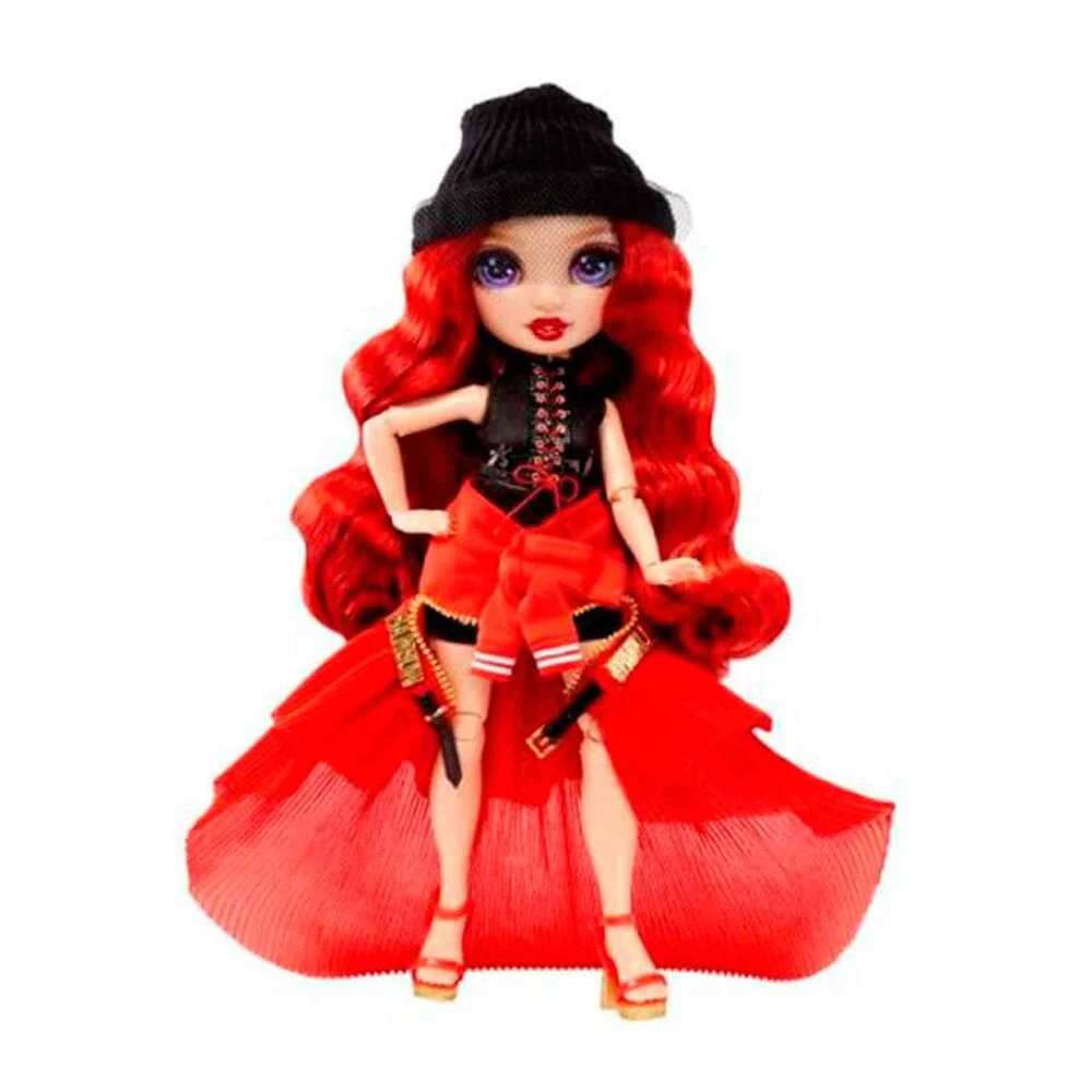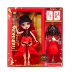 Muñeca – Rainbow High Fantastic Fashion: Ruby Por primera vez, puedes obtener estos divertidos y coloridos vestidos de pasarela diseñados por tus personajes favoritos de Rainbow High en la exitosa serie animada Rainbow High. Ruby, Poppy, Sunny, Jade, Skyler, Violet y Amaya dejaron brillar sus verdaderos colores al diseñar estos divertidos looks.