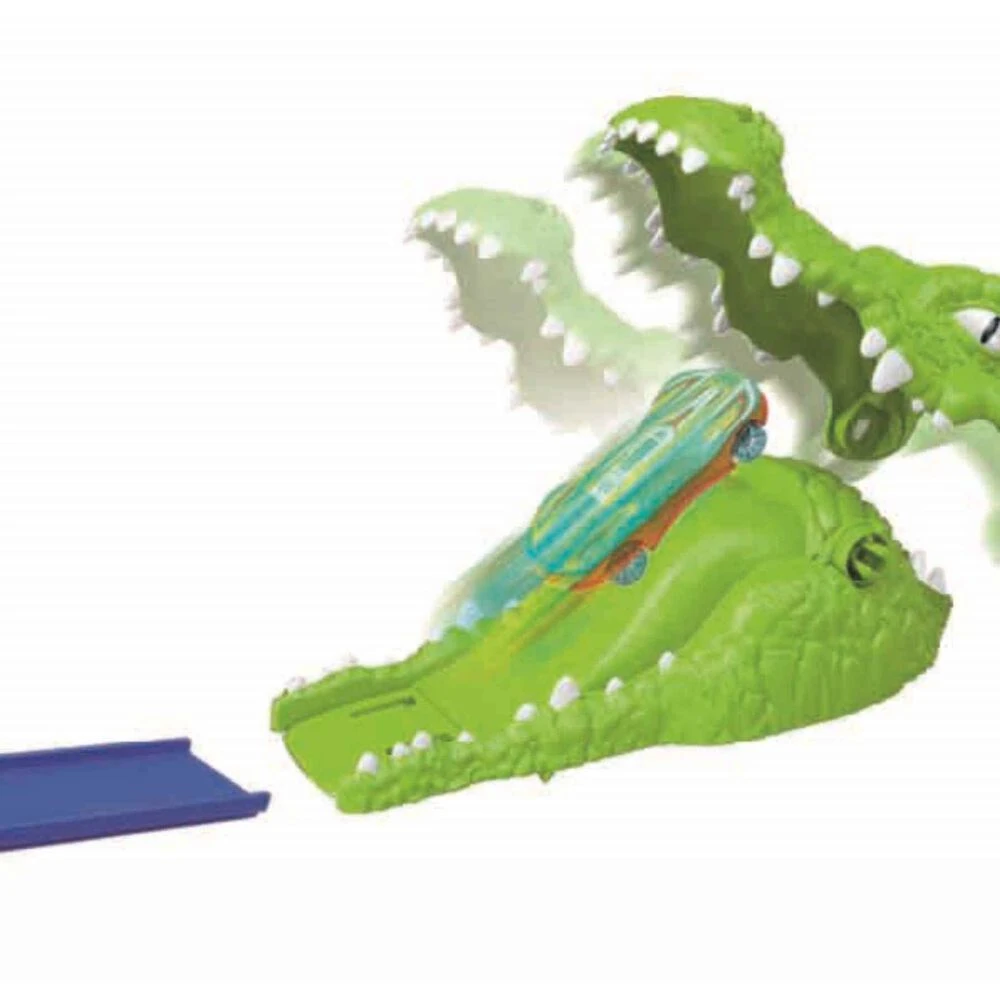Divertida Pista con boca de caimán de nuestra marca Motor Planet. Supera todos los ostáculos con la Pista Caimán. Plataforma de lanzamiento hará que el coche se lance directo a la boca del Caimán. El coche realizará un loop de 360º ¿podrá salvarse del caimán?