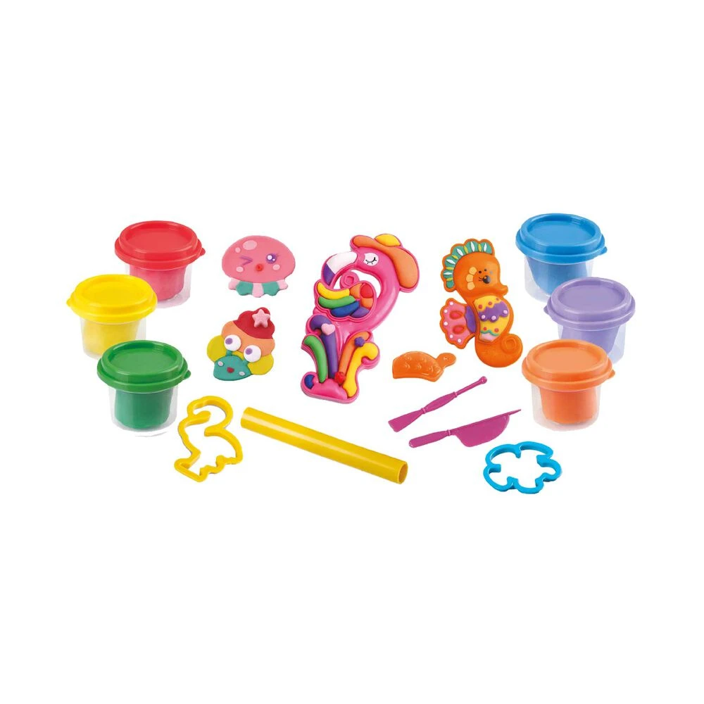 ¡Amasa, haz rodar y modela a personajes de ensueño! Diviértete con este completo conjunto. Modela a personajes de ensueño con la plastilina, accesorios y herramientas incluidos. Contiene 6 botes de plastilina de diferentes colores de 56 gramos cada uno. Hay dos modelos diferentes: universo marino y unicornios, se envían por separado. Este juego permite desarrollar la creatividad del peque así como la habilidad manual gracias al moldeo que tendrán que hacer los peques para crear sus personajes favoritos. Edad recomendada: + 3 años.ADVERTENCIA: ADVERTENCIA: No recomendable para menores de 3 años, ya que contiene piezas pequeñas que podrían provocar asfixia en caso de ser ingeridas por el niño/a.