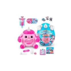 Producto de temática unboxing, en donde podremos encontrar un concepto que encanta a las niñas como es el cuidado de los animales, es decir la veterinaria. Es por ello que cuando conozcan a su nuevo peluche podrán quitarle la pegatina de la tripa y ver qué le ocurre Adicionalmente este producto incluye hasta 12 diferentes sorpresas, como vendas, radiografías, jeringuilla con slime, un huevo con un charm en su interior e incluso una pizarra de diagnóstico. Hay hasta 6 diferentes perritos para coleccionar. Este artículo se vende de forma aleatoria. No es posible escoger un modelo concreto.