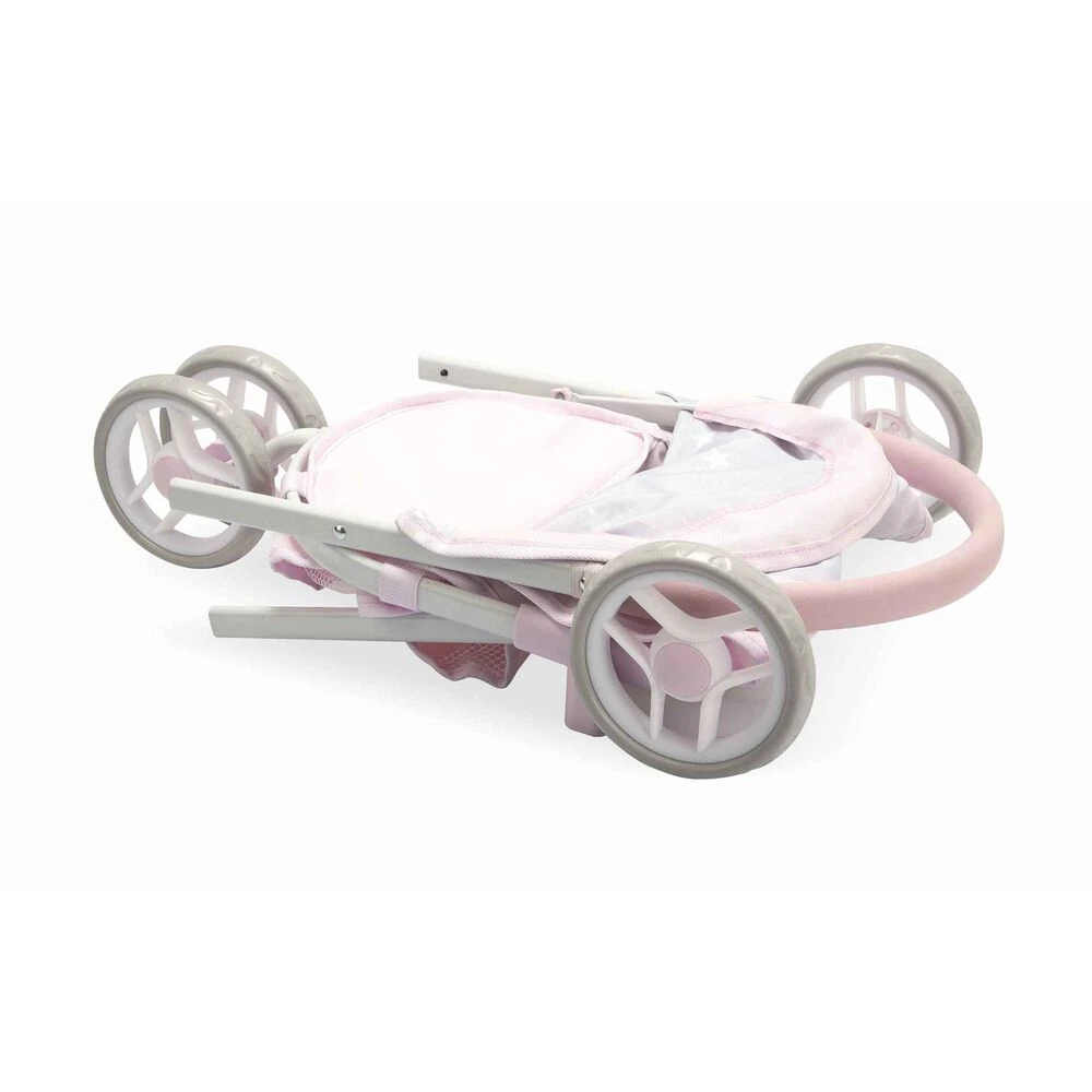 Con este cochecito de muñecas los paseos serán mucho más divertidos. Los peques se lo pasaran en grande sin separarse de su bebé. Se ha elaborado con tejidos y materiales de gran calidad que garantizan la larga duración del producto. Para facilitarles a los peques el manejo de la silla las ruedas delanteras son giratorias.Además, su sólida estructura metálica es plegable para un mejor almacenaje.En la parte inferior dispone de una amplia bandeja para guardar todos los accesorios de su bebé. ADVERTENCIA: No recomendable para menores de 3 años, ya que contiene piezas pequeñas que podrían provocar asfixia en caso de ser ingeridas por el niño/a.