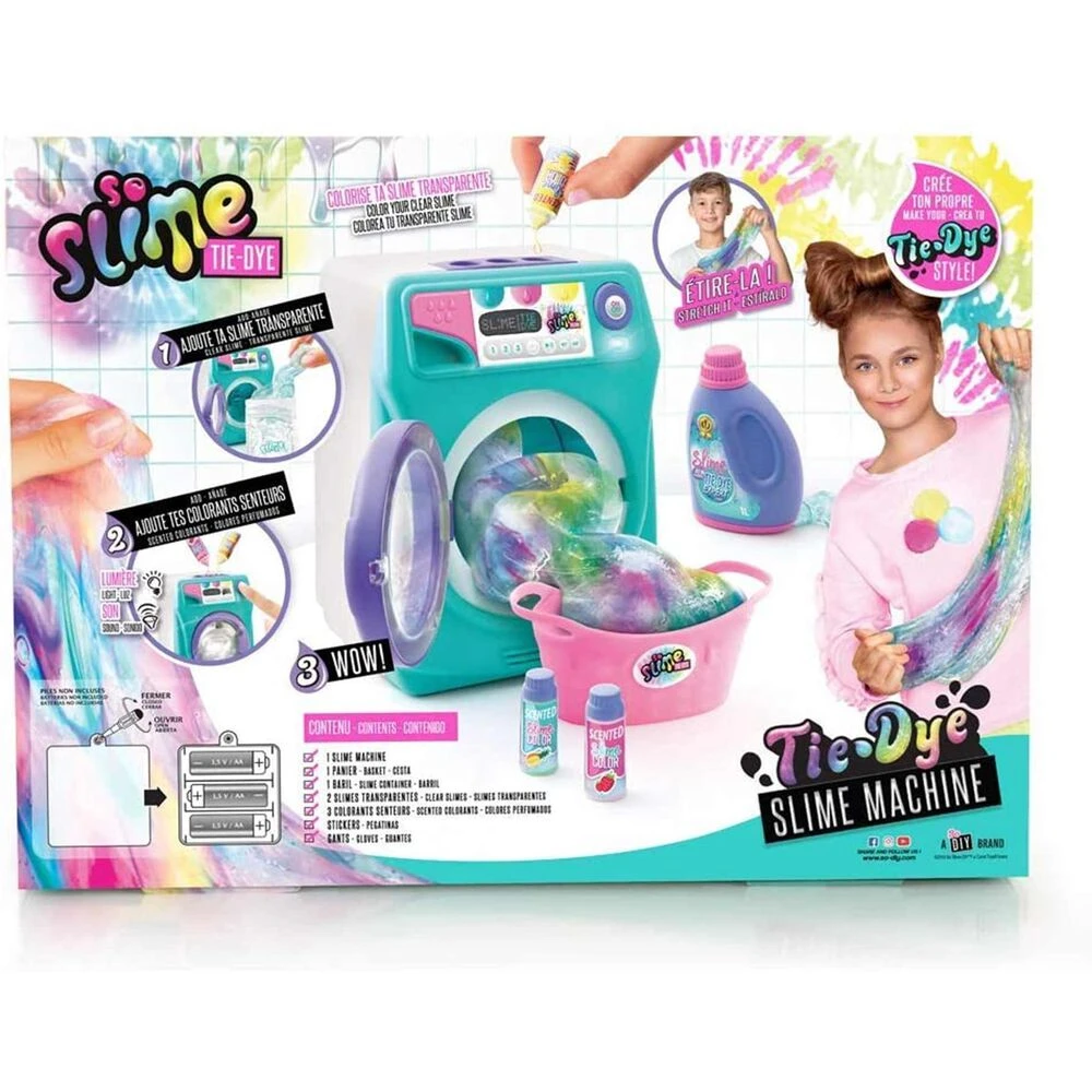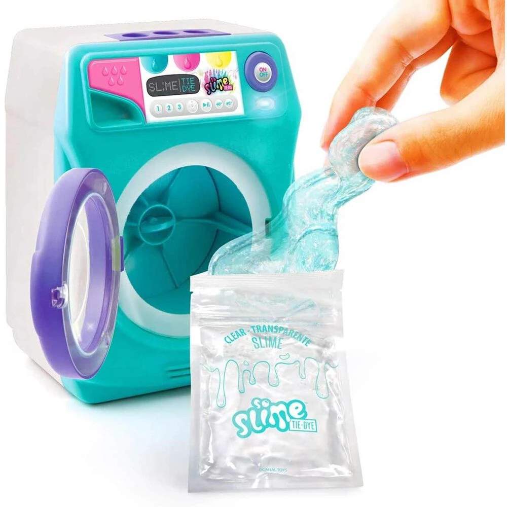El SLIME TIE&DYE MACHINE está entre los juegos de manualidades más divertidos para los niños y niñas mayores de los 6 años.Este juguete es perfecto como regalo y proporciona horas de diversión y momentos inolvidables. Lavar la ropa nunca será tan divertido! ¿Qué combinación de colores elegirás? El estuche incluye, además de la lavadora, 1 cesta, 1 contenedor, 6 bolsa transparentes de slime, 3 colorantes perfumados y un par de guantes.