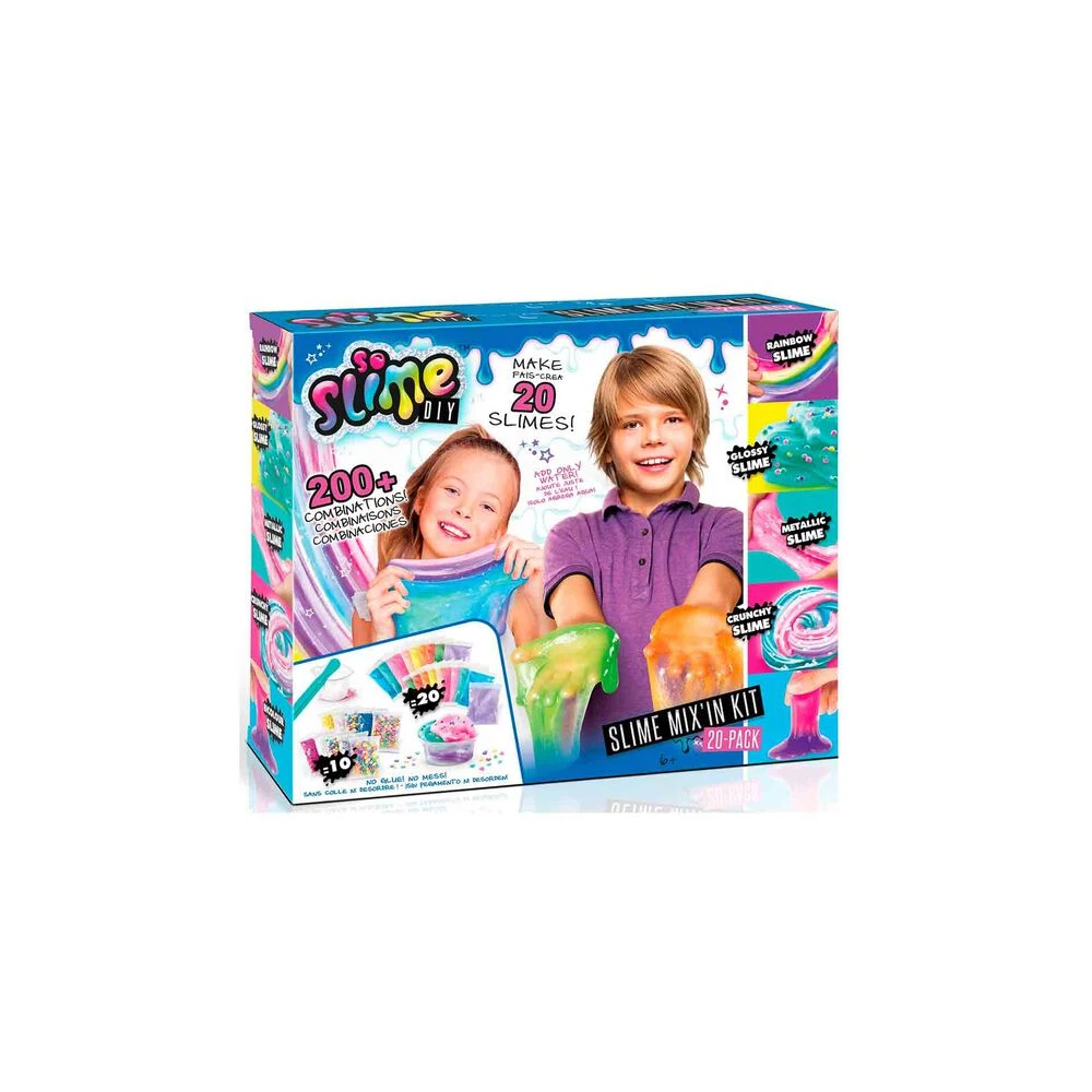 Fantástico kit con 20 recambios de Slime con el que podrás crear hasta 200 combinaciones diferentes. Usa el bol, añade los polvos de Slime, un poco de agua y agítalo bien con la herramienta. ¡Tan solo falta añadir las decoraciones a tu gusto y guardarlo en su bote! Contenido: 20 bolsas de polvos de slime, 10 botes, 1 bol, 1 herramienta y 10 decoraciones. Edad recomendada: +7 años.
